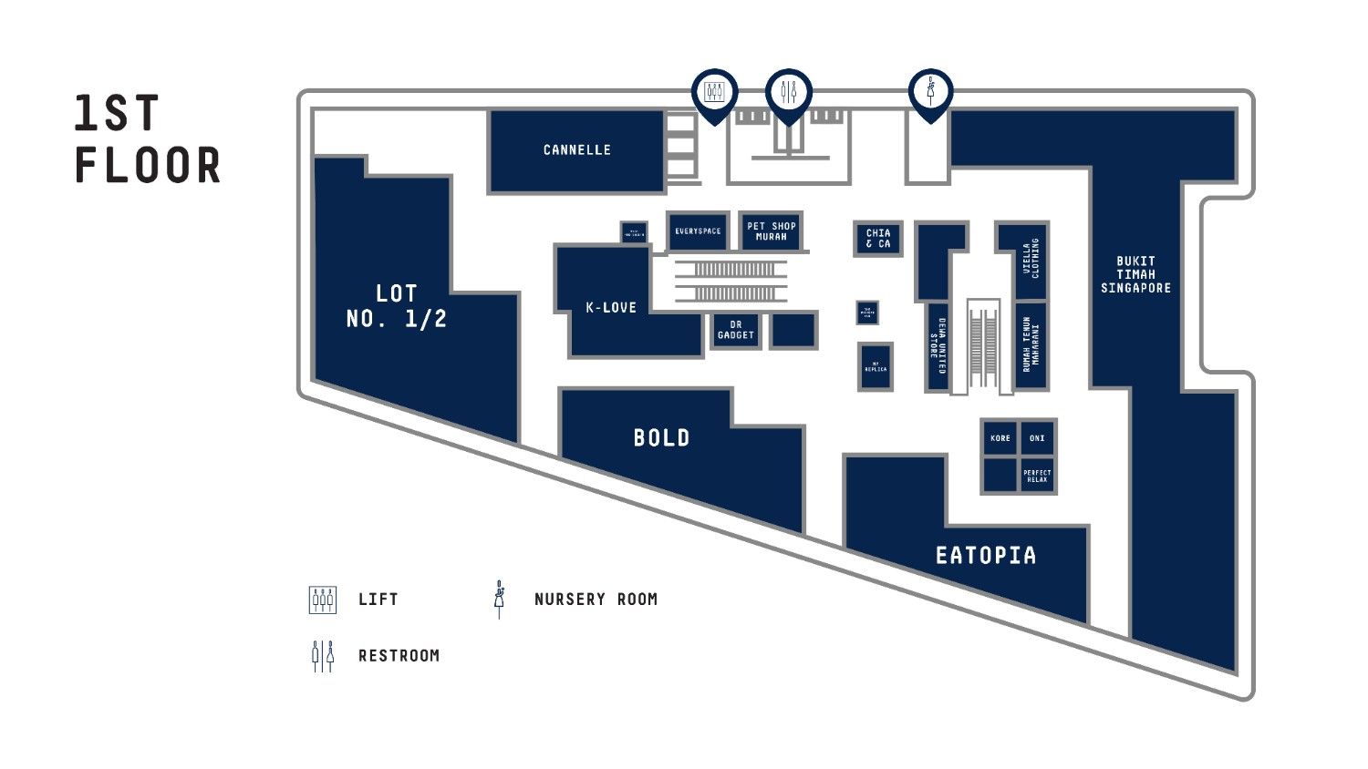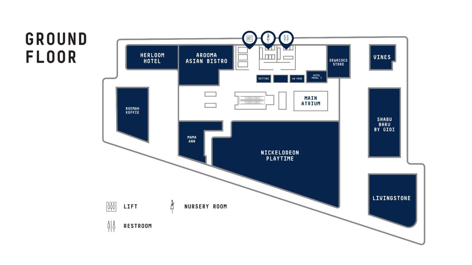 Floor Plan BasementGround Floor1st Floor2nd Floor Basement Floor Apollo KTV & Social Club ATM Center Iqos Ground Floor Arooma Asian Bistro Dewacoco Store HW Powds Mama Ann Roemah Koffie Vittori 1st Floor BOLD Cannelle Chia & Ca Dr Gadget Eatopia K-Love Kore Lot No Half Oni Rumah Tenun Maharani Viella 2nd Floor Cow Play Cow Moo GRID Ichiban Crepes Minimelts Randol